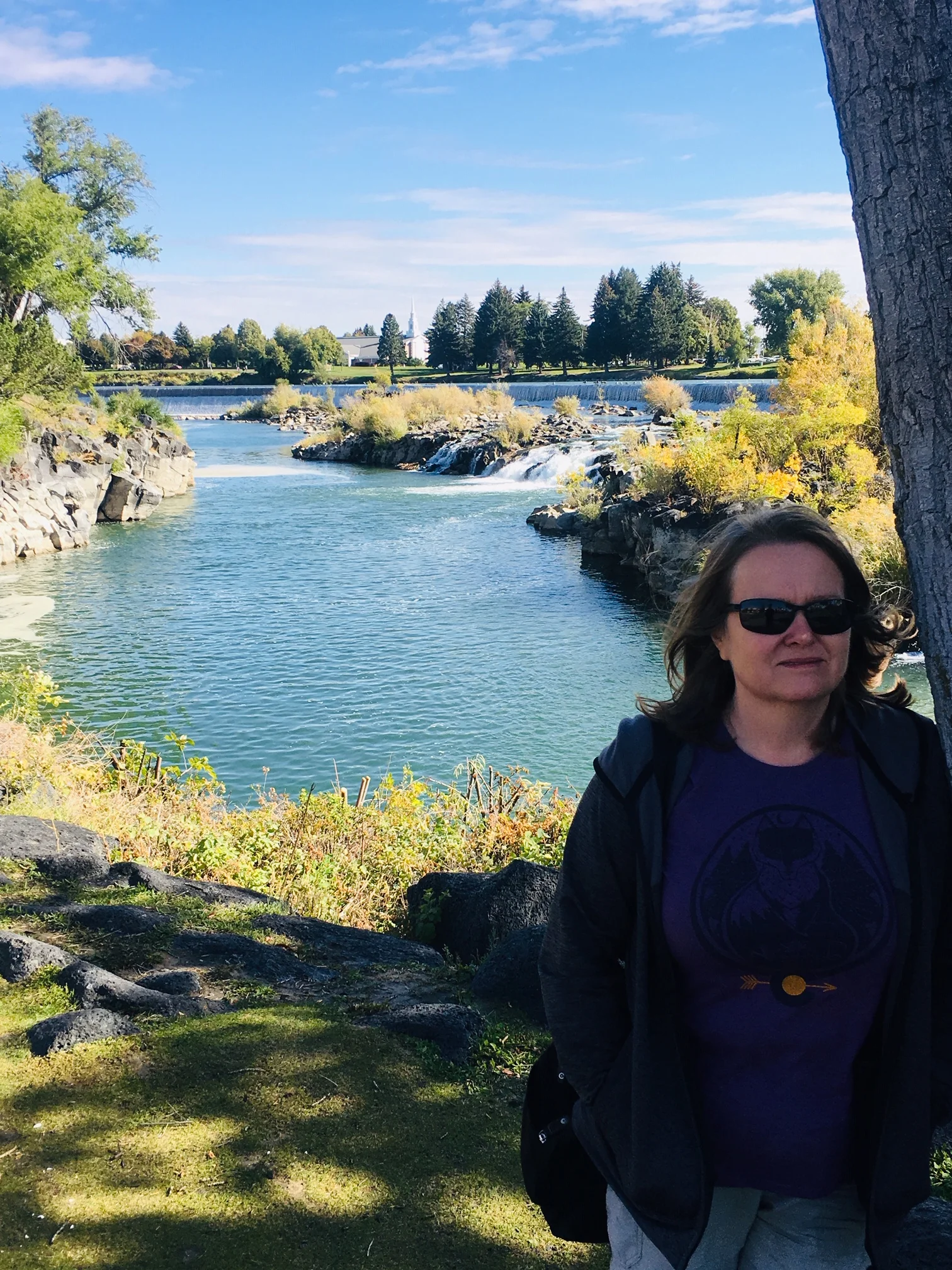So, my NRCS job prevented me from taking any real vacation for the bulk of the year, until I had worked there for 6 months. When that date rolled around, in late September, Margaret and I decided to hit the road with the new trailer for a solid week, and wander up into Idaho and Montana with it. Here Margaret is posing with Idaho Falls’ namesake along the Snake River: